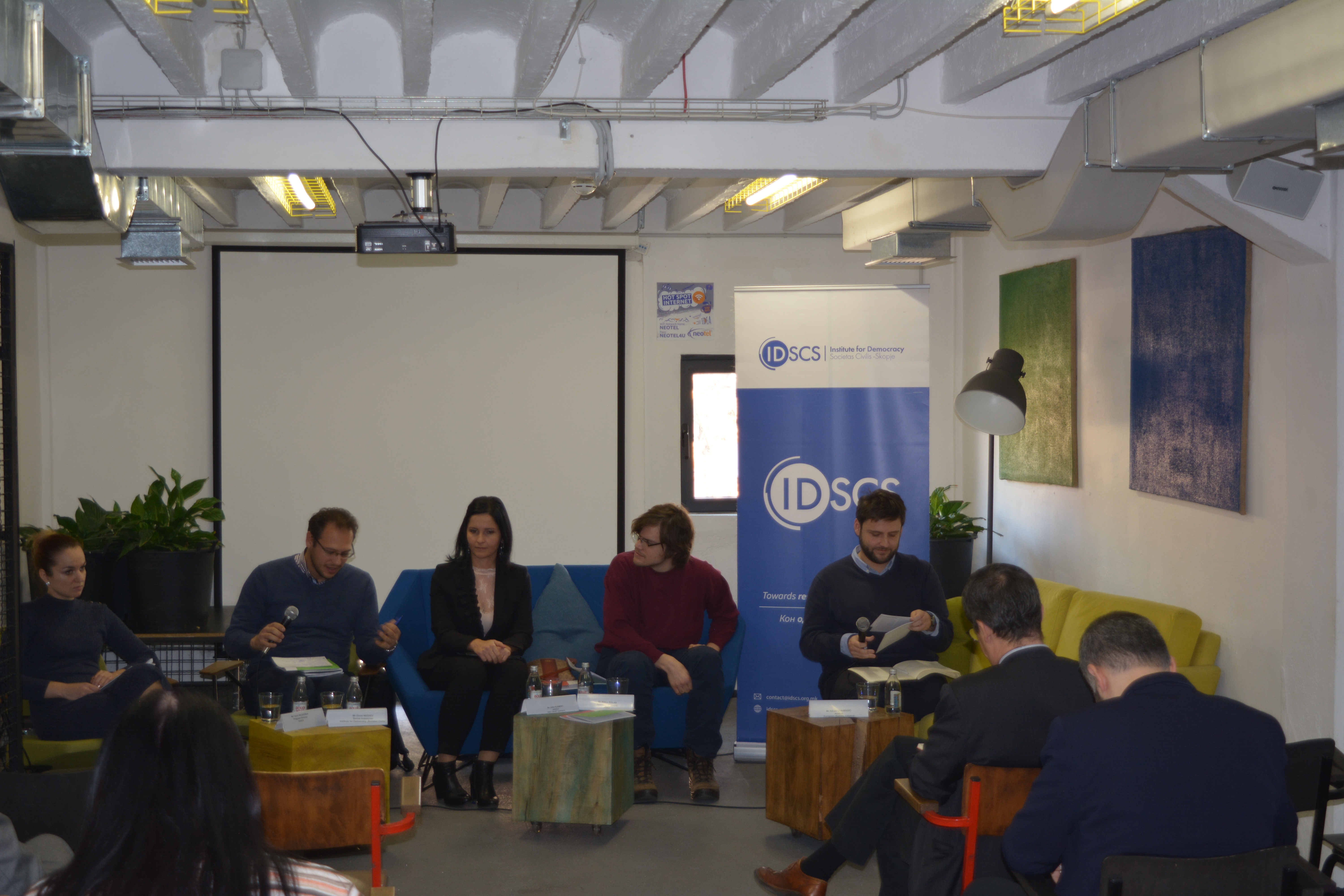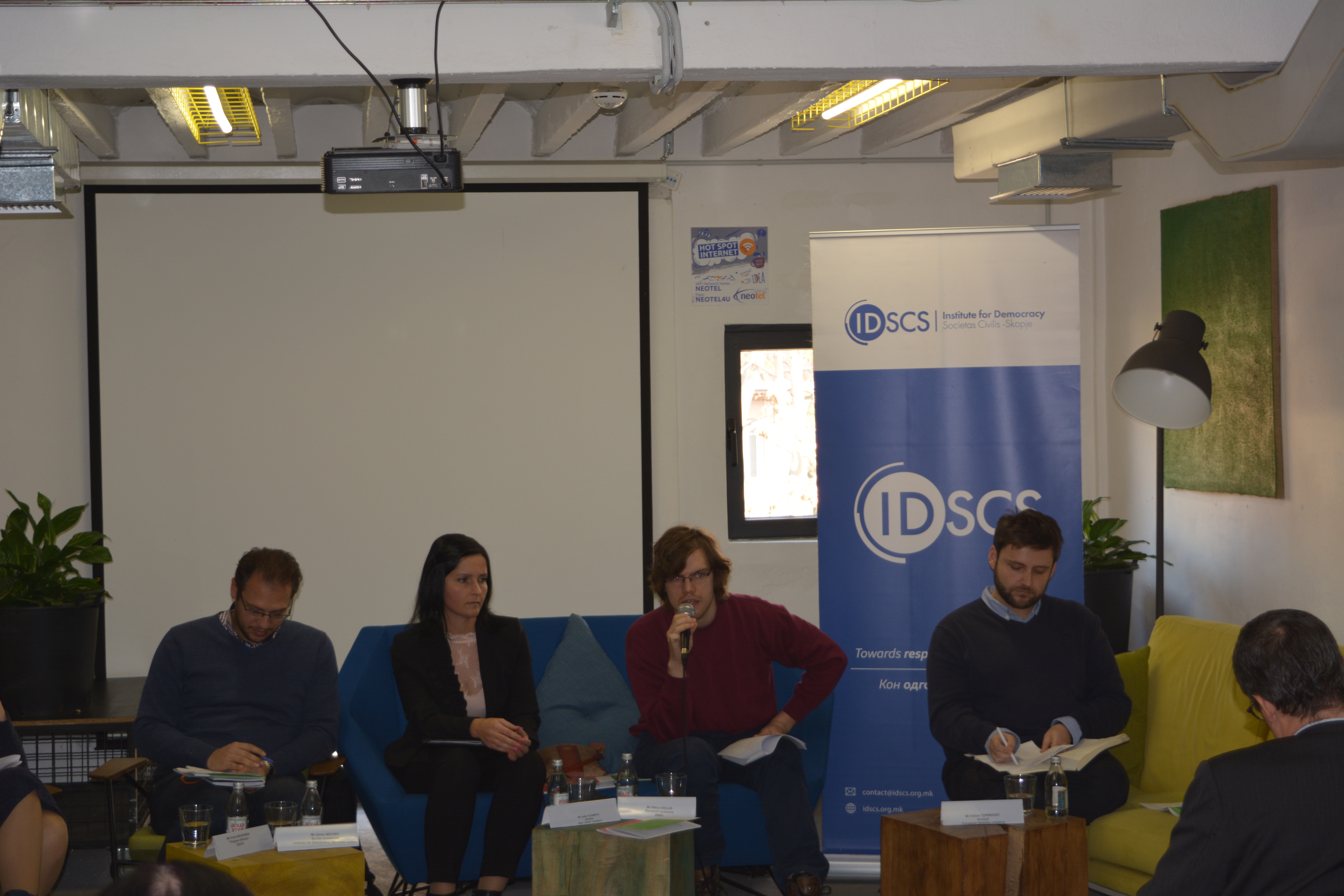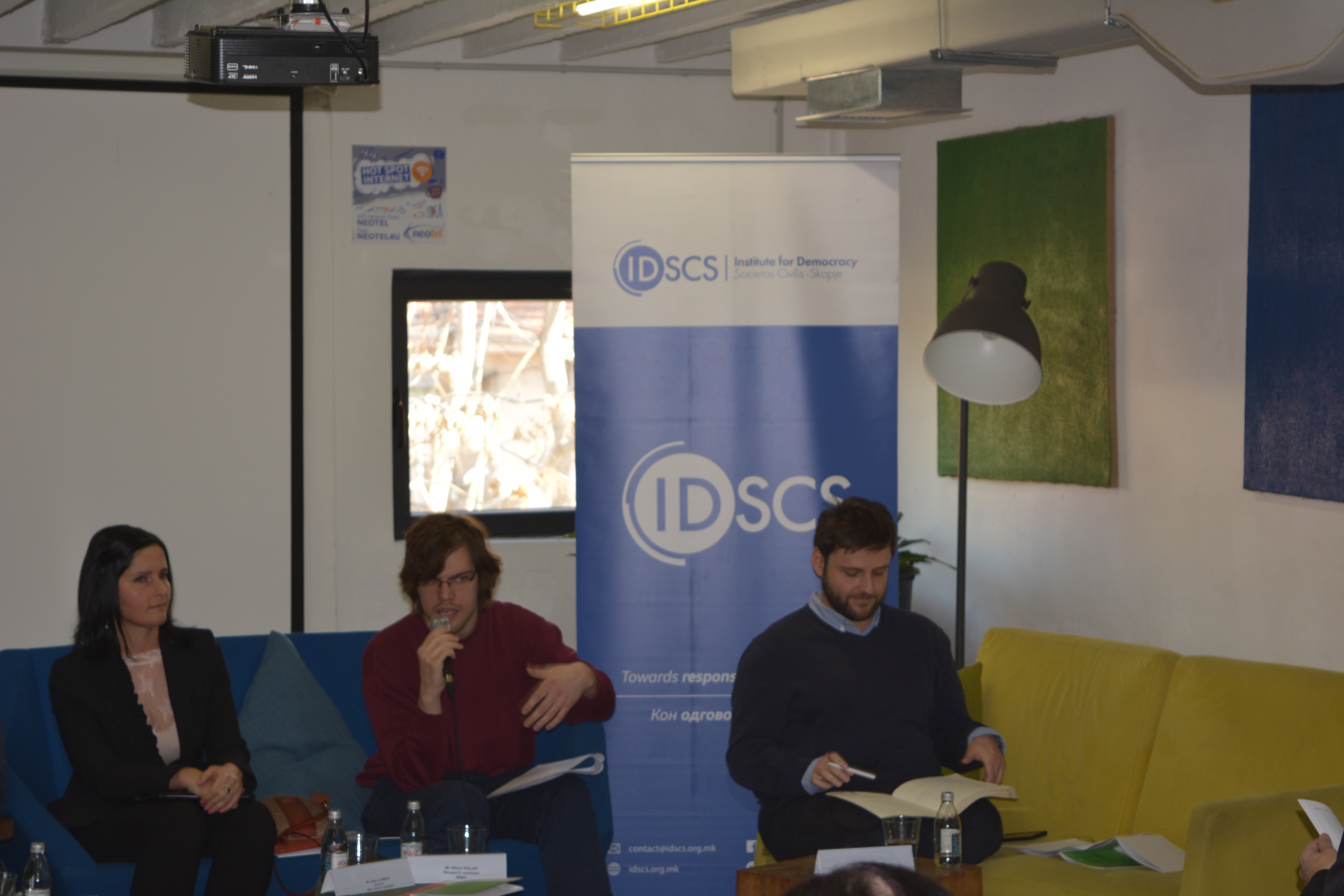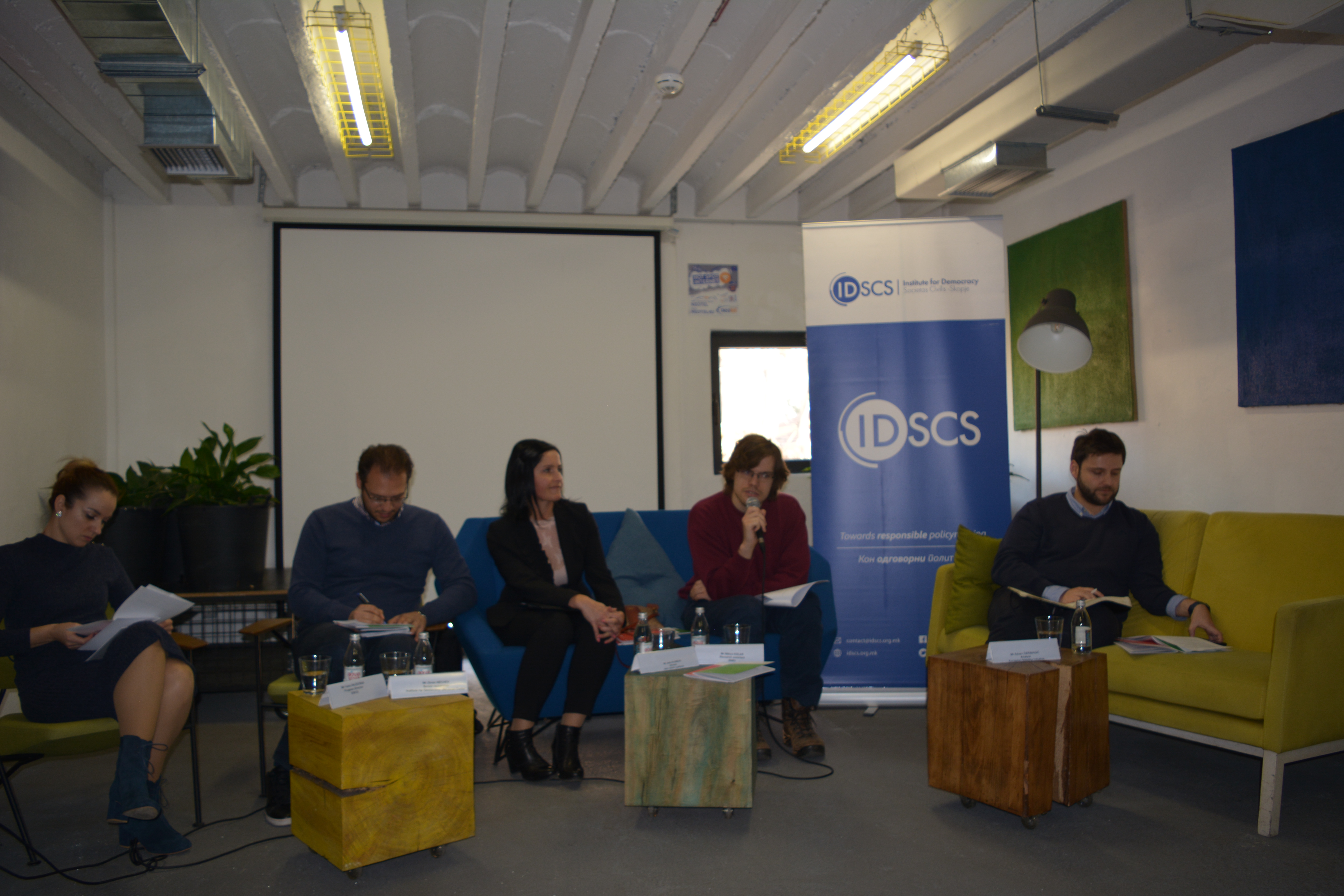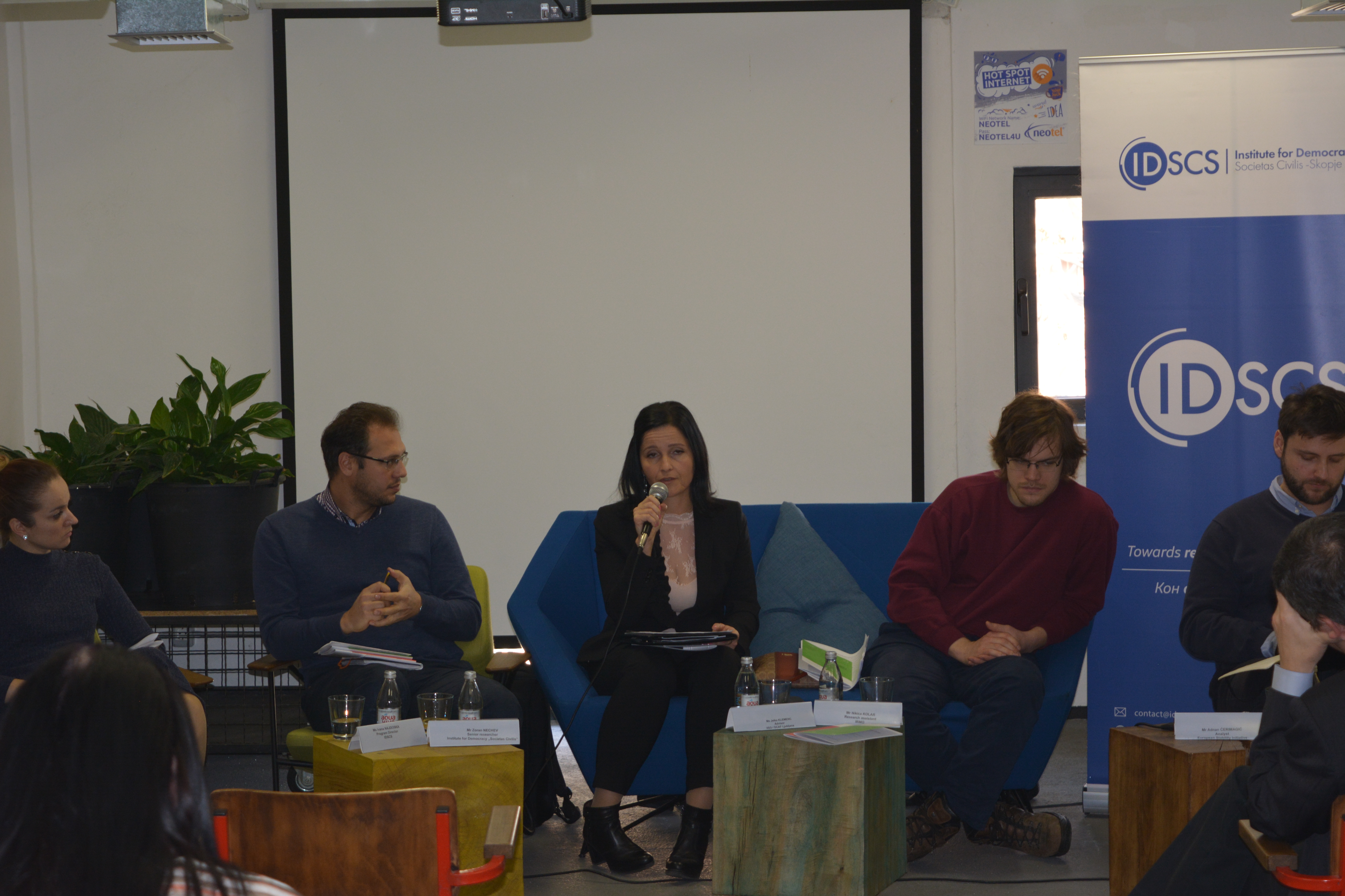 The event took place at Public Room in Skopje and was opened by Ms Ivana Najdoska, Program Director of IDSCS and Mr Zoran Nechev, Head of the Centre for European Integrations at the Institute for Democracy “Societas Civilis” – Skopje (IDSCS) and Coordinator of the SEE Think Net. Ms Jelka Klemenc and Mr Nikica Kolar presented the findings of the two policy papers and discussed the newest developments with respect to the regional cooperation in the field of the migration policy, as well as the state of affairs of the emigration flows and their impact on the demographics in the region. Mr Adnan Ćerimagić, an analyst at the European Stability Initiative, had the opportunity to comment on the findings of the two publications by providing a Western Balkan perspective in the context of the region’s EU accession.