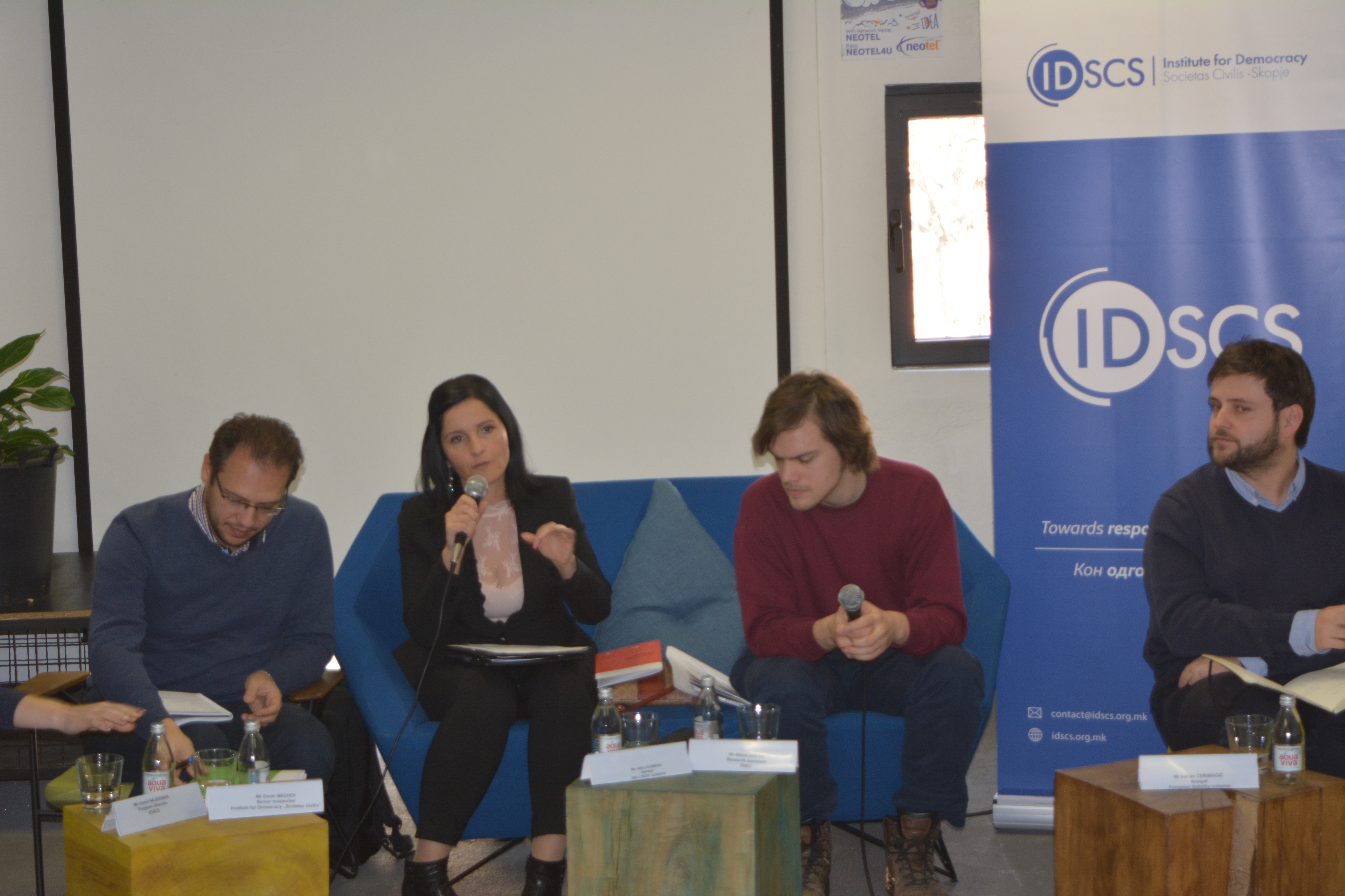 The Institute for Democracy “Societas Civilis” Skopje, on behalf of the Southeast European Think Net Network (SEE Think Net), hosted an event aimed at promoting the policy papers “Migratory flows and tackling organised crime in Southeast Europe: Enhancing a future European Union-Western Balkans engagement” written by Ms Jelka Klemenc – Advisor at Support Group of the Integrative Internal Security Governance (IISG) hosted by the Geneva Centre for the Democratic Control of Armed Forces (DCAF) Ljubljana and Ms Ivana Boštjančič Pulko – Head of Programme Peace and Security at the Centre for European Perspective (CEP) from Slovenia, as well as the “Emigration and demographic change in Southeast Europe” written by Dr. Senada Šelo Šabić – senior scientific associate in the Institute for Development and International Relations in Zagreb (IRMO) and Mr Nikica Kolar – research assistant at IRMO.
