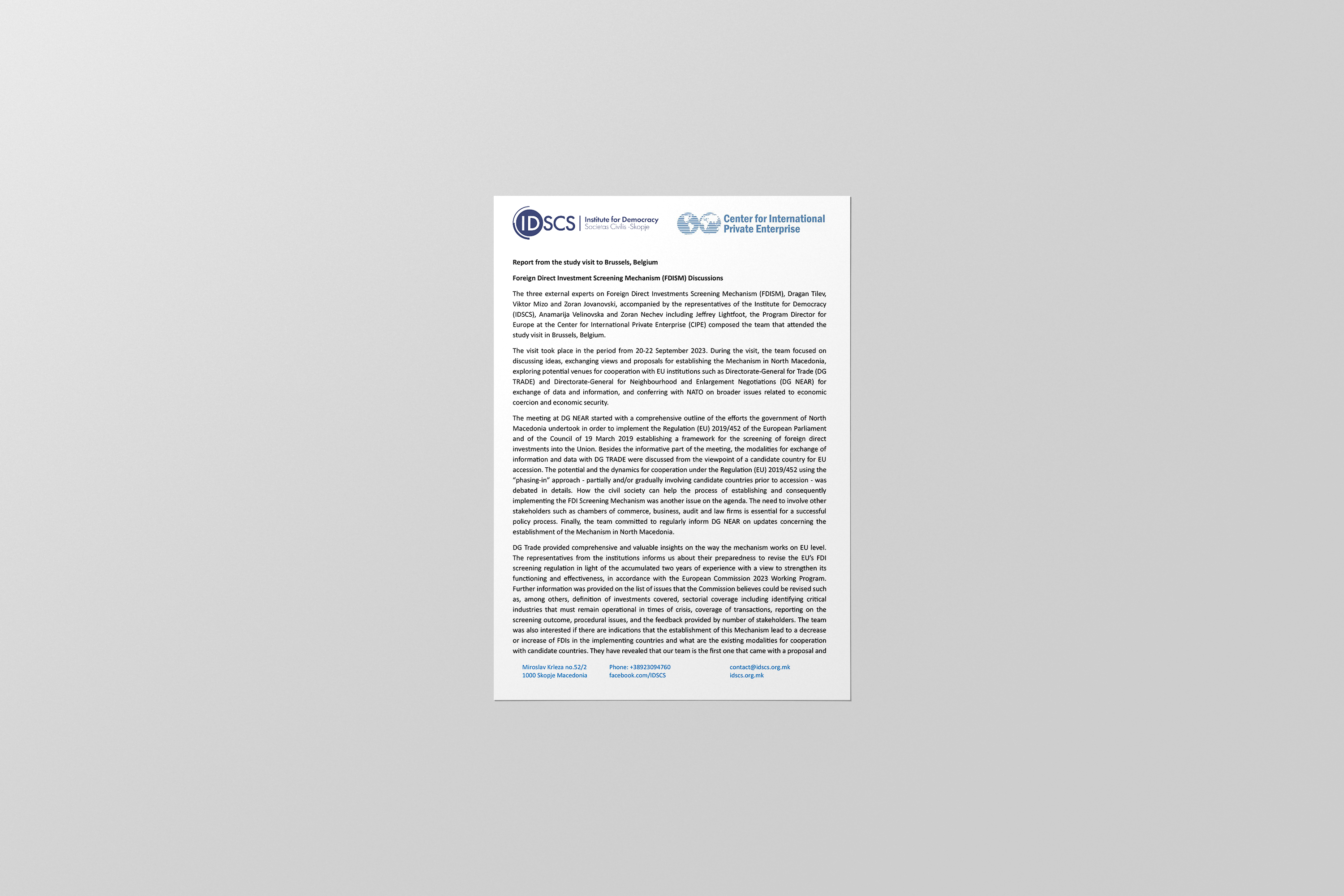 Report from the study visit to Brussels, Belgium