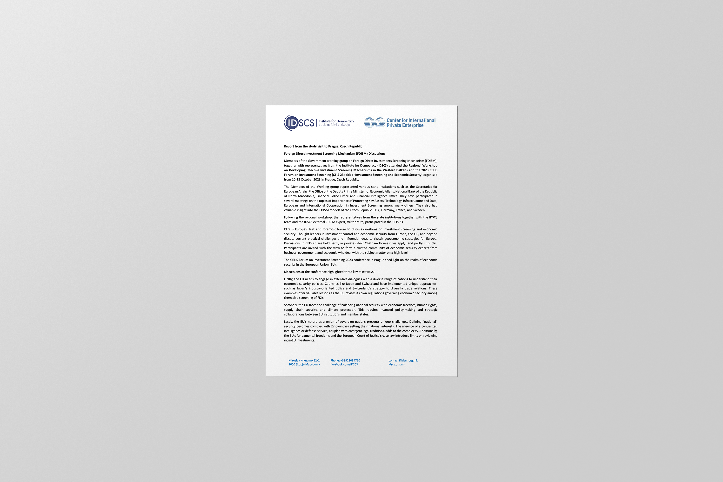 Report from the study visit to Prague, Czech Republic