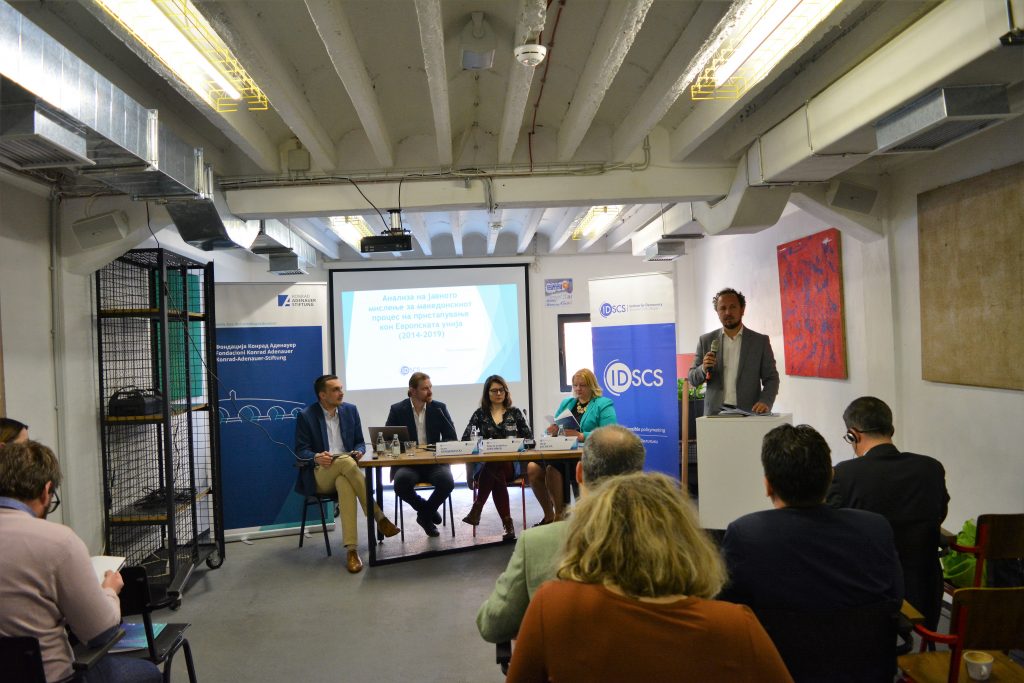 Сандра Кољчакова, програмски менаџер во Фондација Конрад Аденауер истакна дека анализите се значајни затоа што даваат осврт како јавното мислење за македонскиот процес на пристапување кон Европската Унија се развивало во последните пет години.