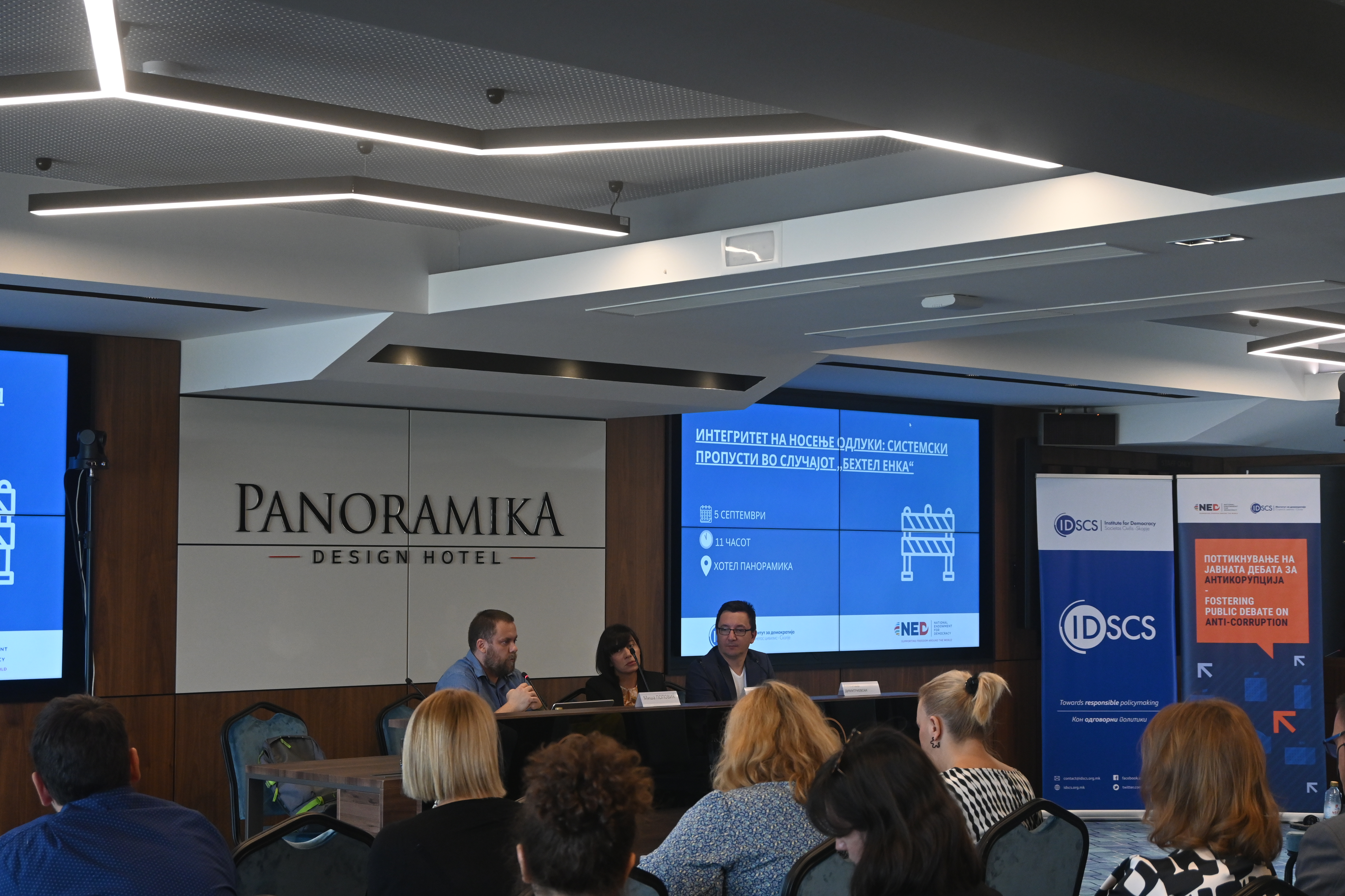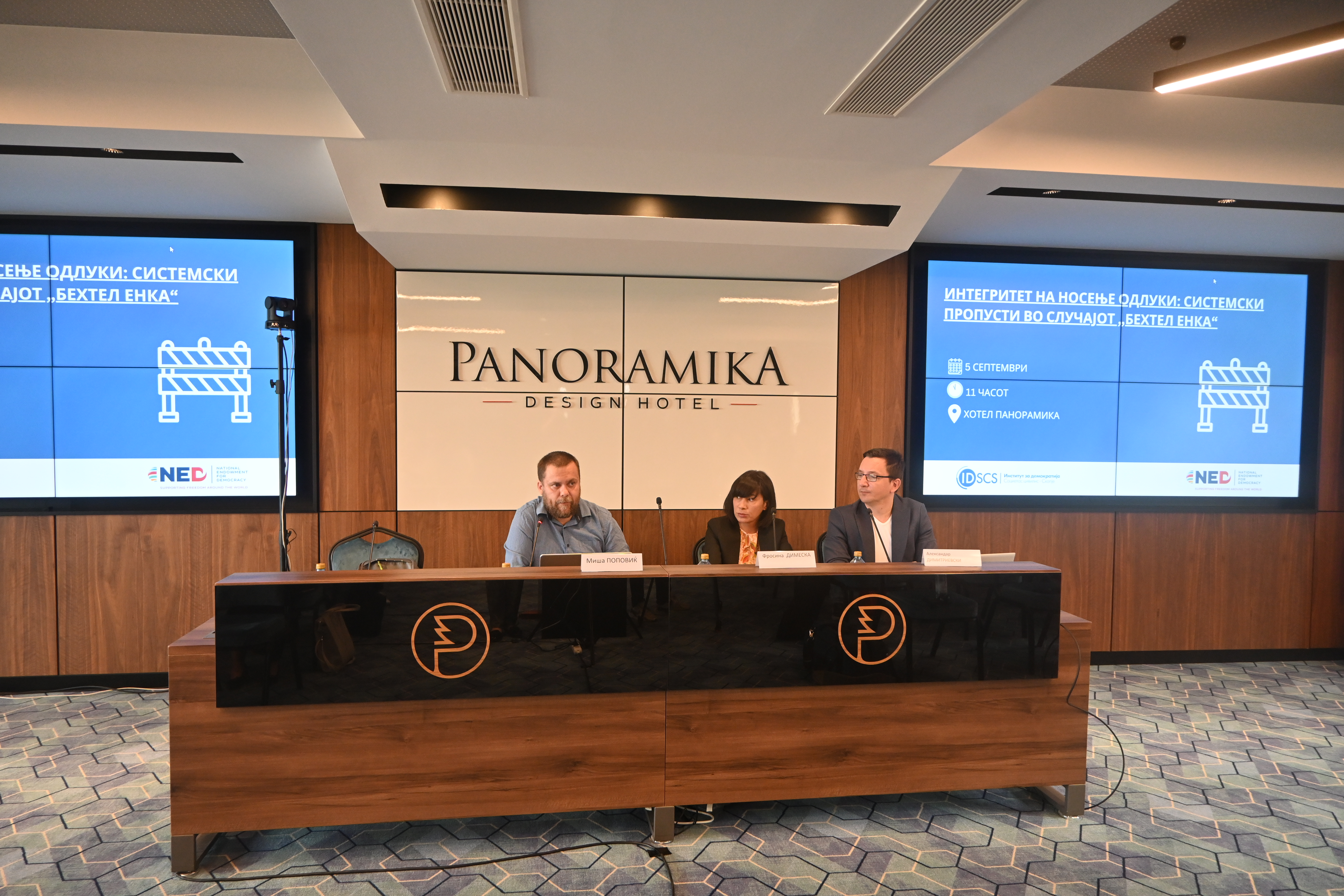 Институт за демократија денеска во хотелот Панорамика во Скопје го одржа настанот „Интегритет на носење одлуки: системски пропусти во случајот ‘Бехтел Енка’“ на кој се дискутираше за пропустите во постапката за избор на компанија за надзор врз изградбата на автопатиштата од коридорите 8 и 10д како и пропустите при склучување на договорот помеѓу владата и конзорциумот „Бехтел Енка“ за изградба на автопатиштата.