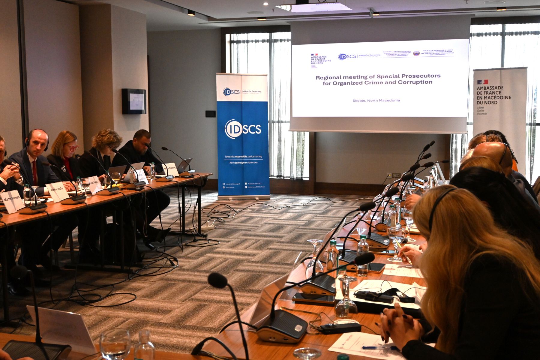 Во организација на Институтот за демократија, во соработка со Основното јавно обвинителство за гонење на организиран криминал и корупција, а со поддршка на Амбасадата на Франција во Северна Македонија, на 3 октомври се одржа регионална средба на специјализираните јавни обвинителства за гонење на организиран криминал и корупција од неколку земји од регионот.
