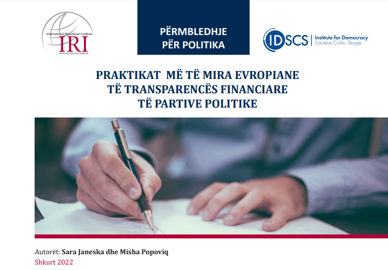 Брифови за јавна политика Praktikat e mira evropiane të monitorimit dhe kontrollit të operacioneve financiare të partive politike 27.04.2022 08:24
